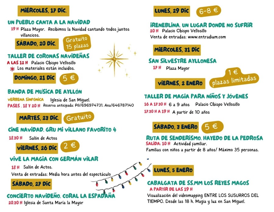 La Navidad en Ayllón se vive intensamente gracias a una programación cultural variada y para todos los públicos. Música, cine, magia y conciertos llenan de ambiente el pueblo durante estos días tan especiales.