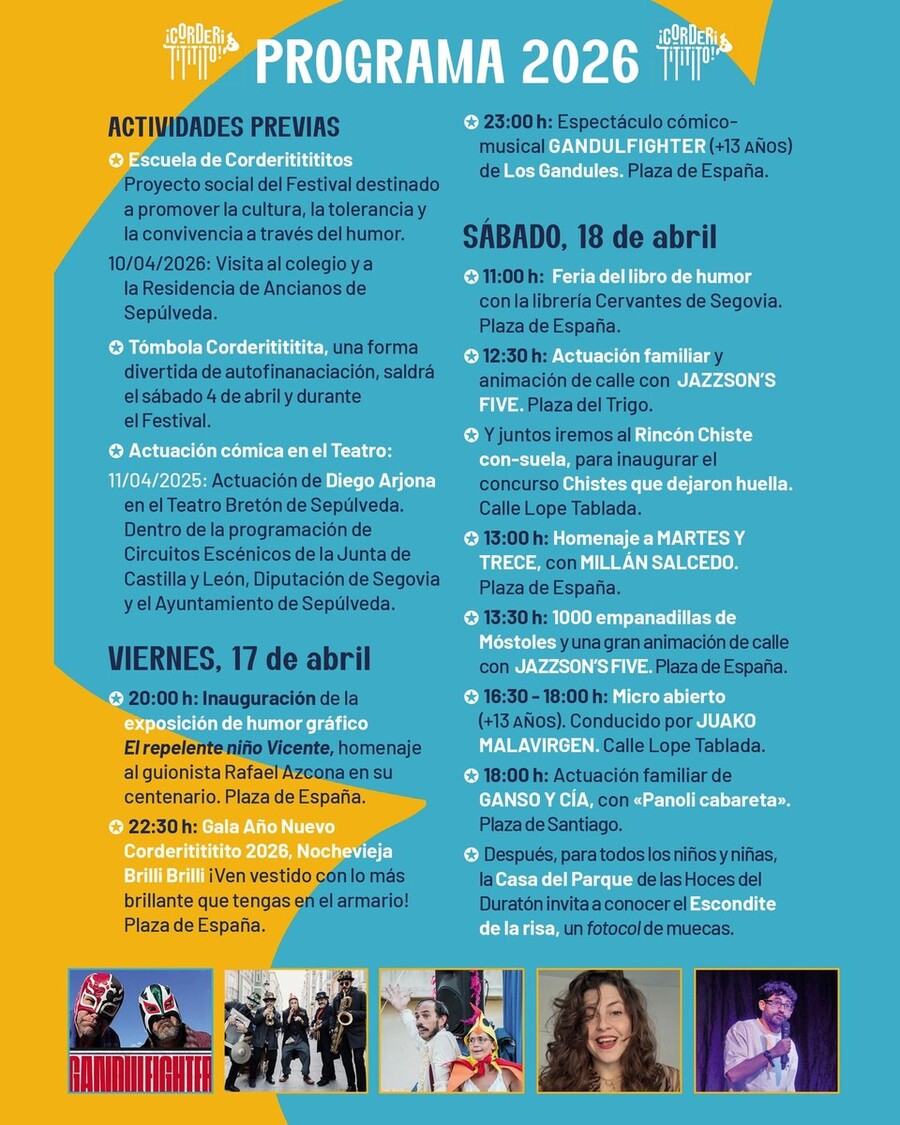Del 17 al 19 de abril, Sepúlveda celebra el festival de humor en la calle Corderitititito.